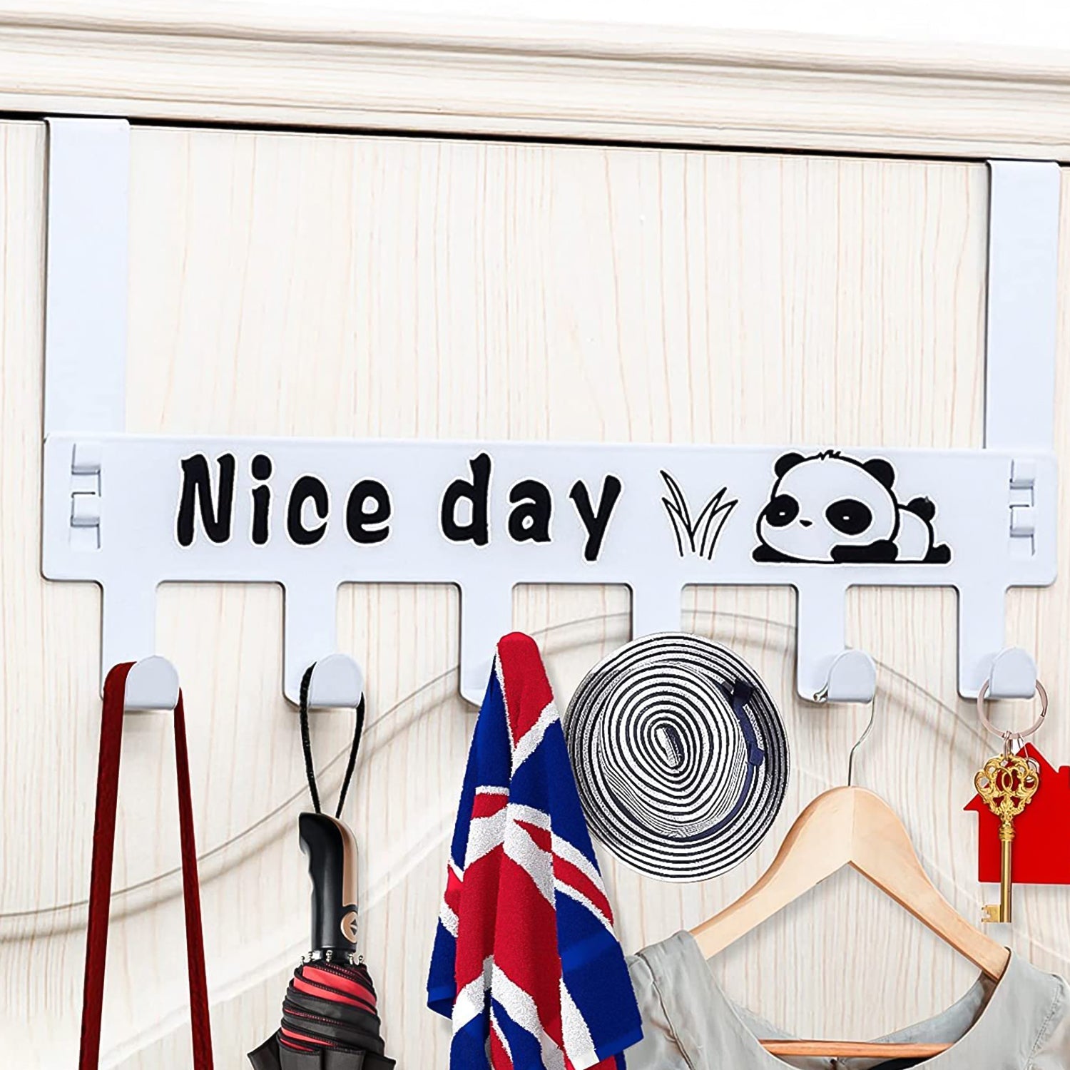 - 【Cute patterns】Cute panda cartoon patterns with “Nice Day” on the surface make the door hook both beautiful and practical.
